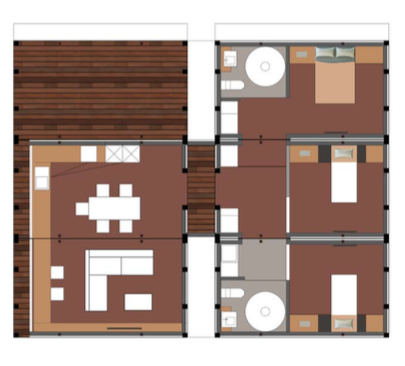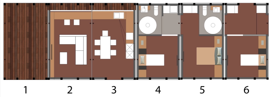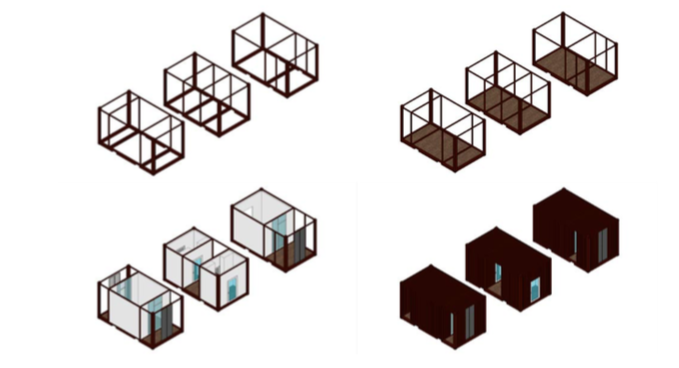 An assemblage of a plurality of containers is arranged for shipping. Each container is an oversize shipping container that in substance forms a part of a building. Each container is arranged to be in a side by side arrangement that takes up a combined length substantially that of a multiple of a standard intermodal shipping container width, and having connections along the combined length at spacings of the width of the standard intermodal shipping container, such that the assemblage may be connected on top of a series of side by side standard intermodal shipping container and/or such that a series of side by side standard intermodal shipping containers may be connected on top of the assemblage.